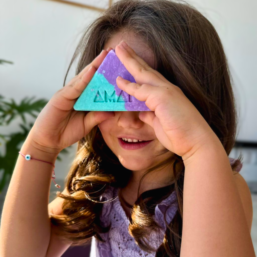 Tu hijo no necesita media docena de productos. Con una sola barra, limpias suavemente su cabello y su piel sin sulfatos, sin siliconas y sin lágrimas (solo risas).